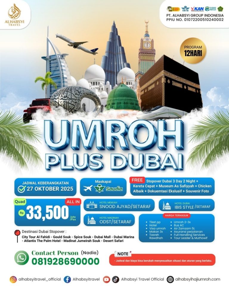 Kami Menyediakan Umroh dan Fasilitas Istimewa. Booking segera seat Anda SEKARANG! karena kami TIDAK MENJAMIN kuota masih Tersedia.